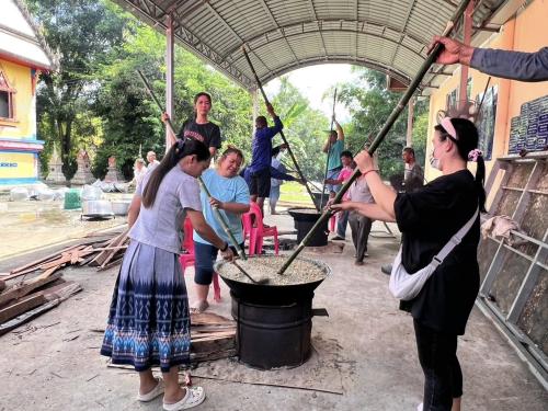 นางอังคณา คุปติศิริรัตน์ พัฒนาการอำเภอปักธงชัย มอบหมายนางสาวเสาวลักษณ์ บุตรไชย นักวิชาการพัฒนาชุมชนชำนาญการ ร่วมกับเทศบาลตำบลปักธงชัย โดยนางสมปอง หมุนดอน นายกเทศมนตรีตำบลปักธงชัย และประชาชนชาวบ้านดู่ ม.6 ต.ปักธงชัย ร่วมสืบสานประเพณีวันออกพรรษาในการ “กวนข้าวทิพย์”