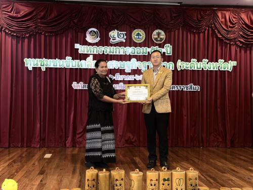 ในการนี้ นางอังคณา คุปติศิริรัตน์ พัฒนาการอำเภอปักธงชัย มอบหมายให้ เจ้าหน้าที่พัฒนาชุมชน นำกลุ่มออมทรัพย์เพื่อการผลิตบ้านบุชมอม หมู่ที่ 4 ตำบลตะขบ อำเภอปักธงชัย เข้ารับรางวัลเชิดชูเกียรติแก่บุคคลและกลุ่มที่มีผลงานโดดเด่นในการส่งเสริมการออมและขับเคลื่อน จำนวน 2 รางวัล ได้แก่