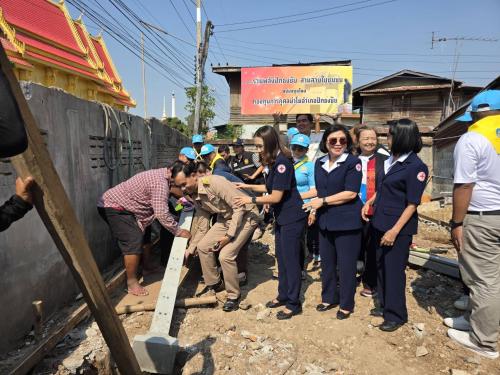 นายธรรมธรรศ ทองสำโรง นายอำเภอปักธงชัย ประธานในพิธียกเสาเอก พร้อมด้วย นางสุธาสินี ทองสำโรง นายกกิ่งกาชาดอำเภอปักธงชัย นายนพพร หีบสระน้อย นายกองค์การบริหารส่วนตำบลตะคุ นายเชน หีบสระน้อย กำนันตำบลตะคุ รวมถึงสมาชิกกิ่งกาชาด ปลัดอำเภอ เจ้าหน้าที่ และผู้นำท้องที่ เข้าร่วมกิจกรรม ผู้นำชุมชน และประชาชนจิตอาสา ร่วมพิธีลงเสาเอกบ้านผู้ยากไร้ กลุ่มเปราะบางในพื้นที่ หมู่ที่ 15 ตำบลตะคุ อำเภอปักธงชัย จังหวัดนครราชสีมา โดยการดำเนินกิจกรรมในครั้งนี้ได้รับการสนับสนุนจากกองทุนย่าโม อำเภอปักธงชัย